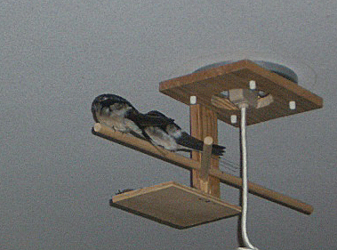 今夜も巣台の横に取り付けた止まり木に並んで寝ています