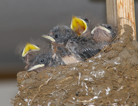 ヒナたちは、ごく小さいころは「ピッ・・ピッ・・」